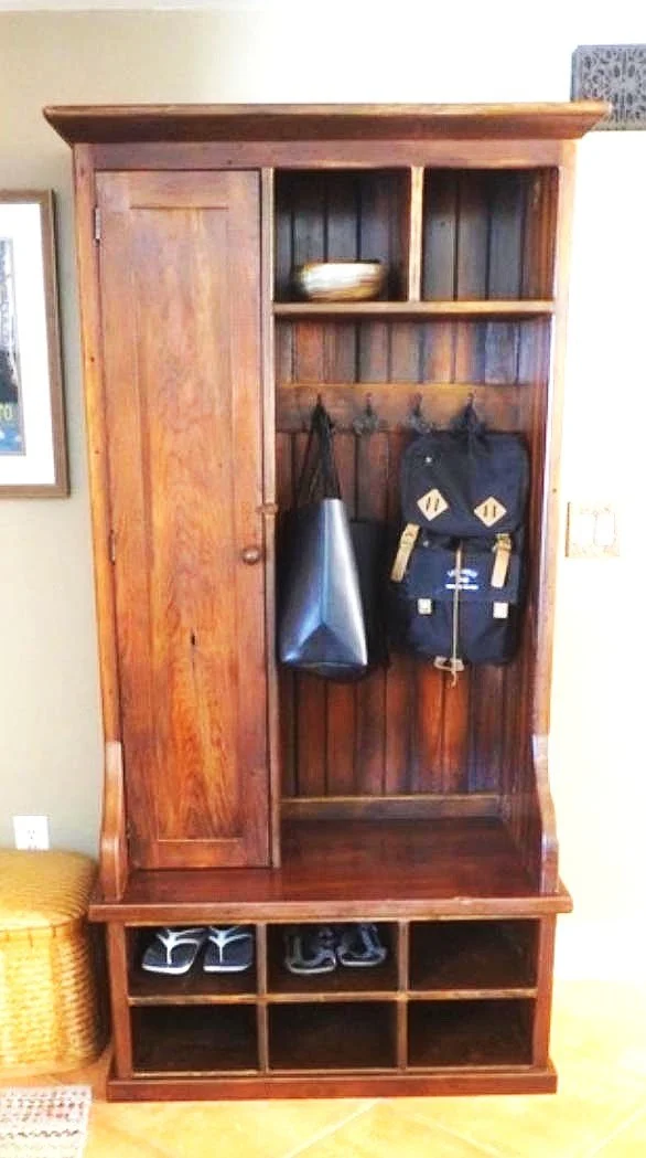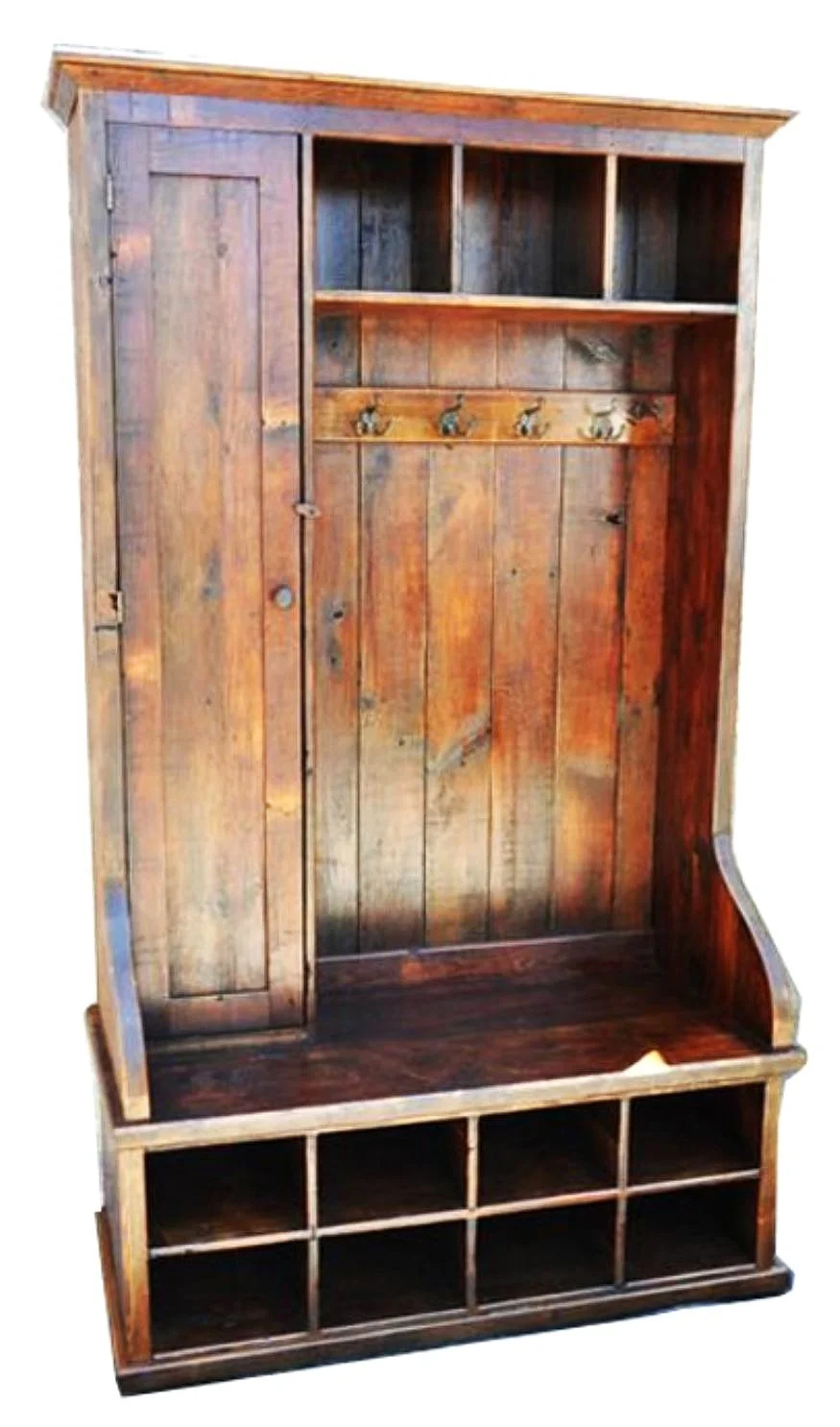 Settle Bench for foyers or mud rooms can include cubbies, hook areas and closed coat storage.