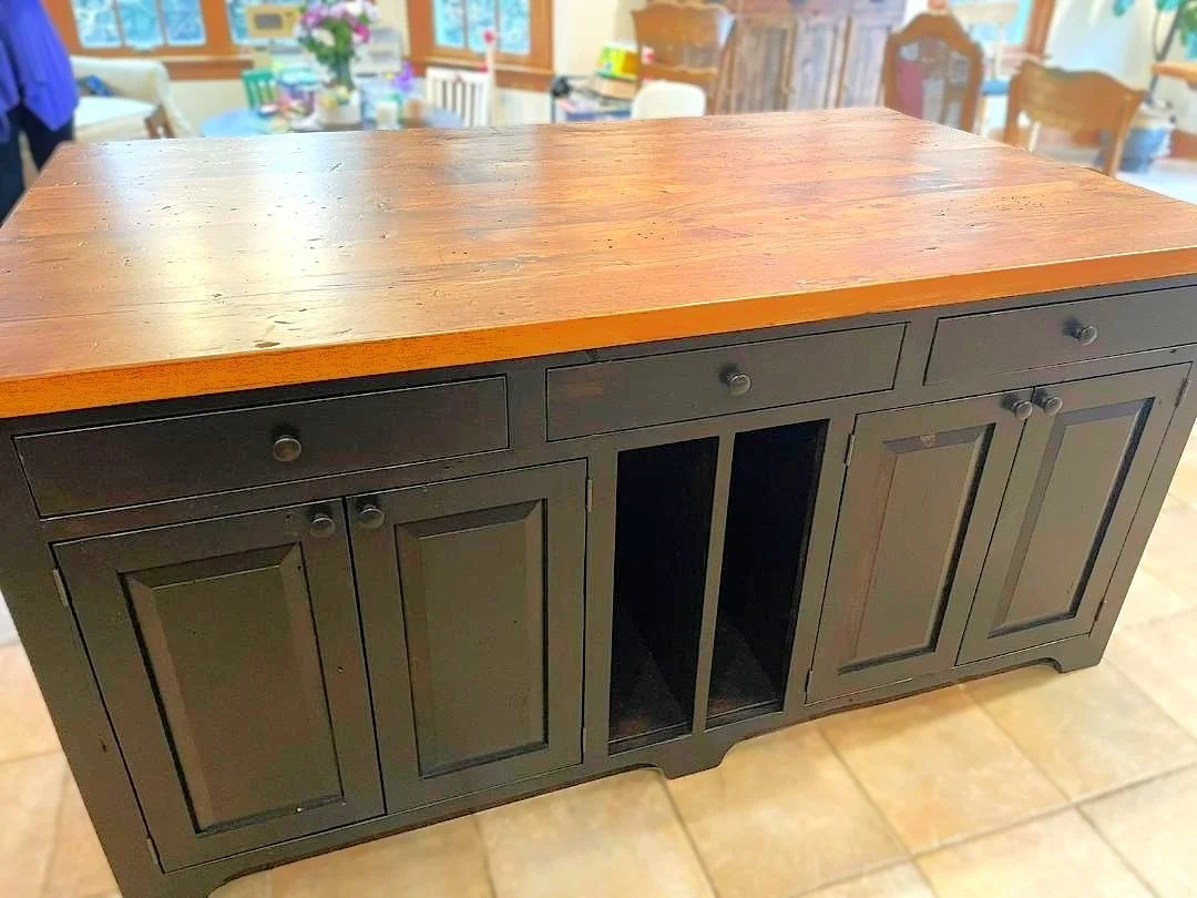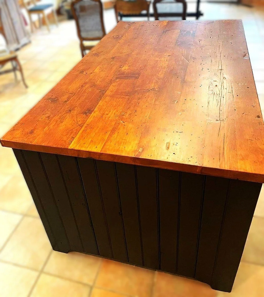 We make individual countertops, too! For pieces of furniture such as existing kitchen islands, we can replace the deteriorating boards of your hoosier cabinets and or old bar top. We can make the counter top with a live edge, too!