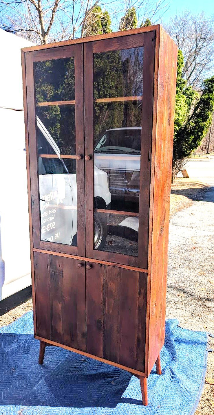 Our cupboards are available in a variety of woods such as Mushroom Boards, Pine, Elm, and, of course, our signature 1800’s reclaimed Barnwood of Pine. But what separates our cases from the competition is our real backing of beautiful solid wood and flexibility to include reclaimed doors, drawers, shelves and other specialized features.