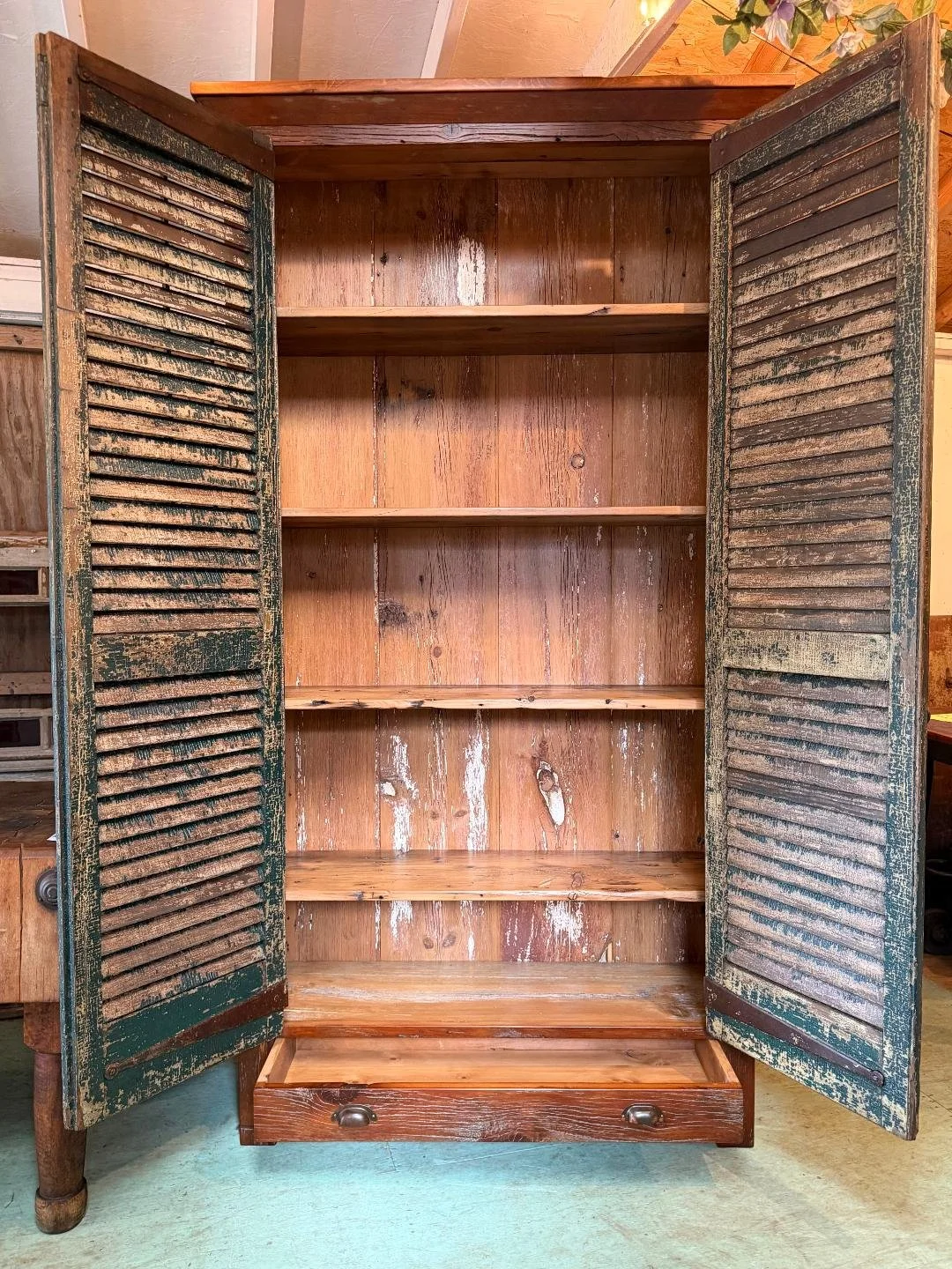 Detail of a gorgeous Cupboard made with doors from the shutters of an 1800’s Amish Farm House!