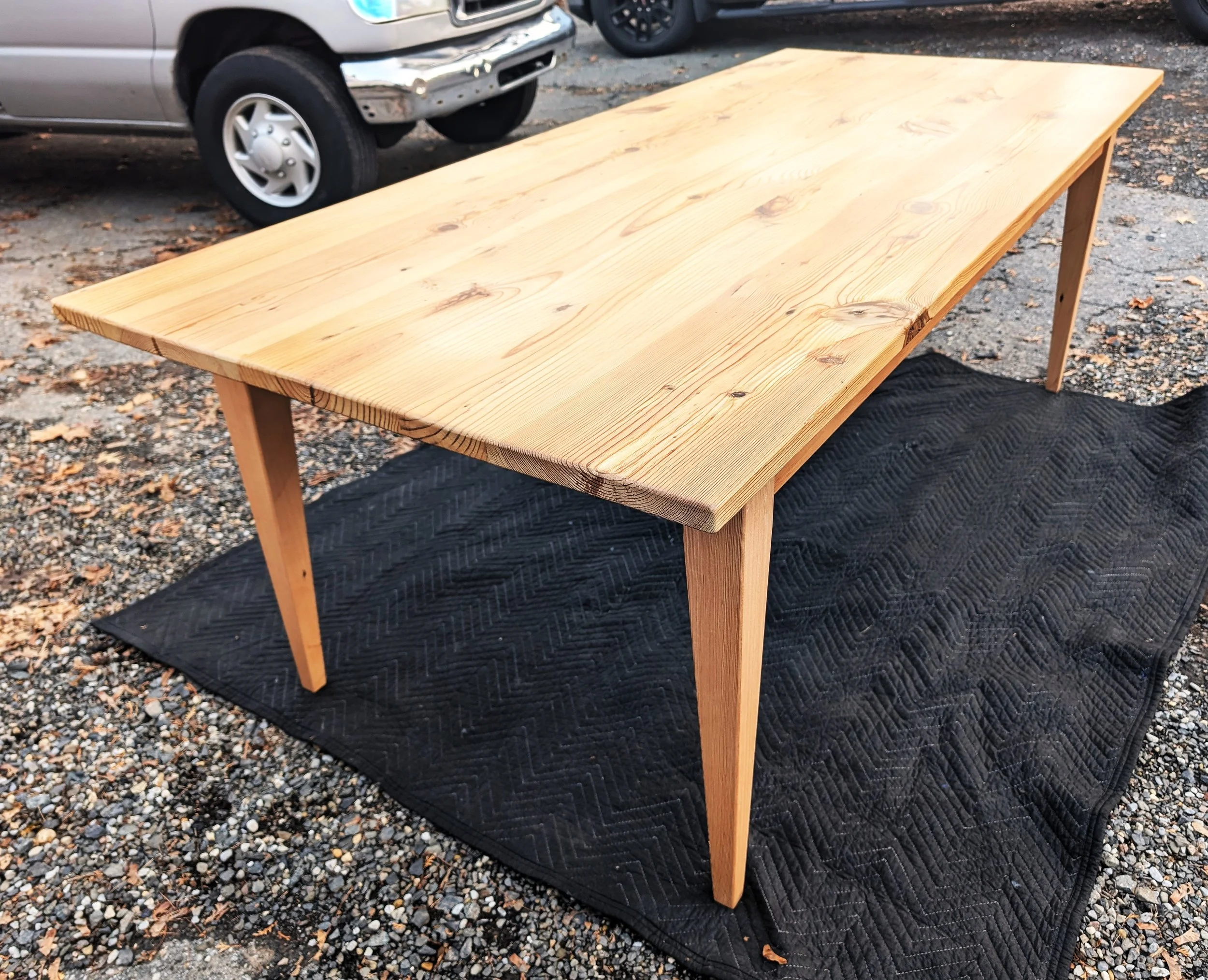 Trestle Table in Natural Finish, which includes multiple coats of polyurethane.