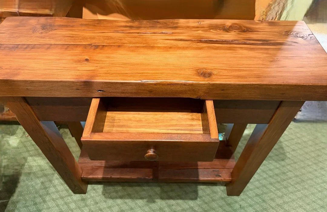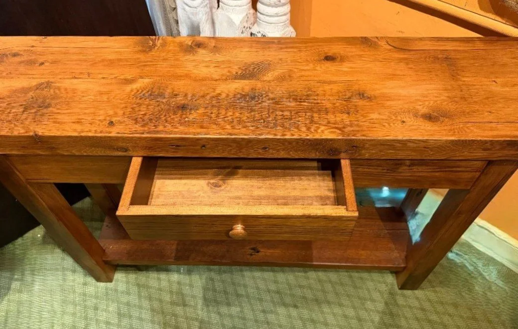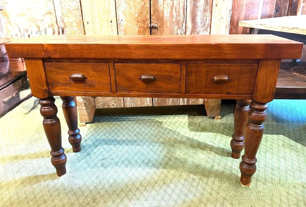 Beautiful Custom Console with 3” Thick Top, Turned Legs and Authentic Metal Pulls! Now that’s love Amish style!!
