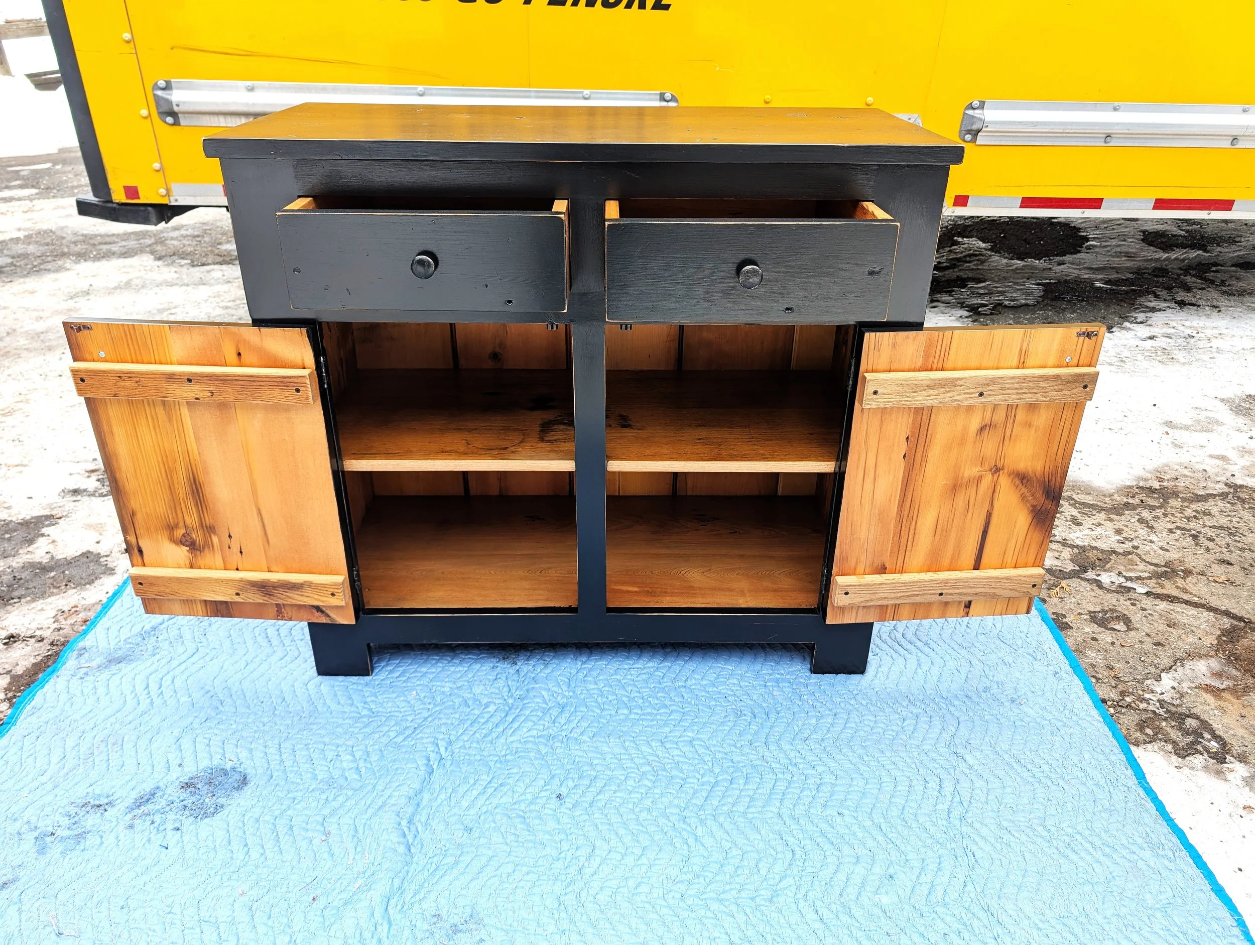 Sideboard with Dropleaf Sides (in the “up” position) & surrounded by happy customers!