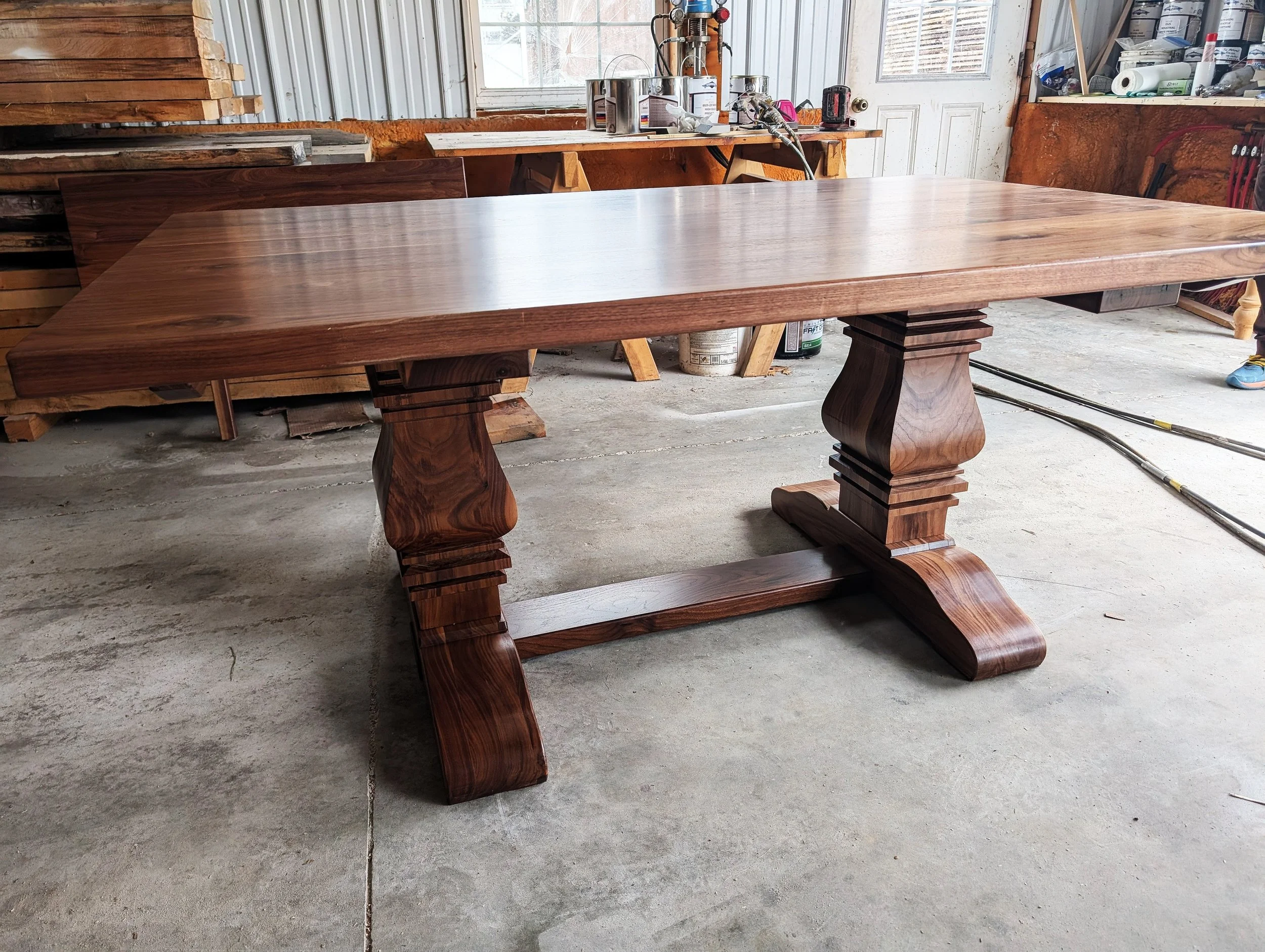 #17 Trestle Table with a 2” table top in a Dark Walnut
