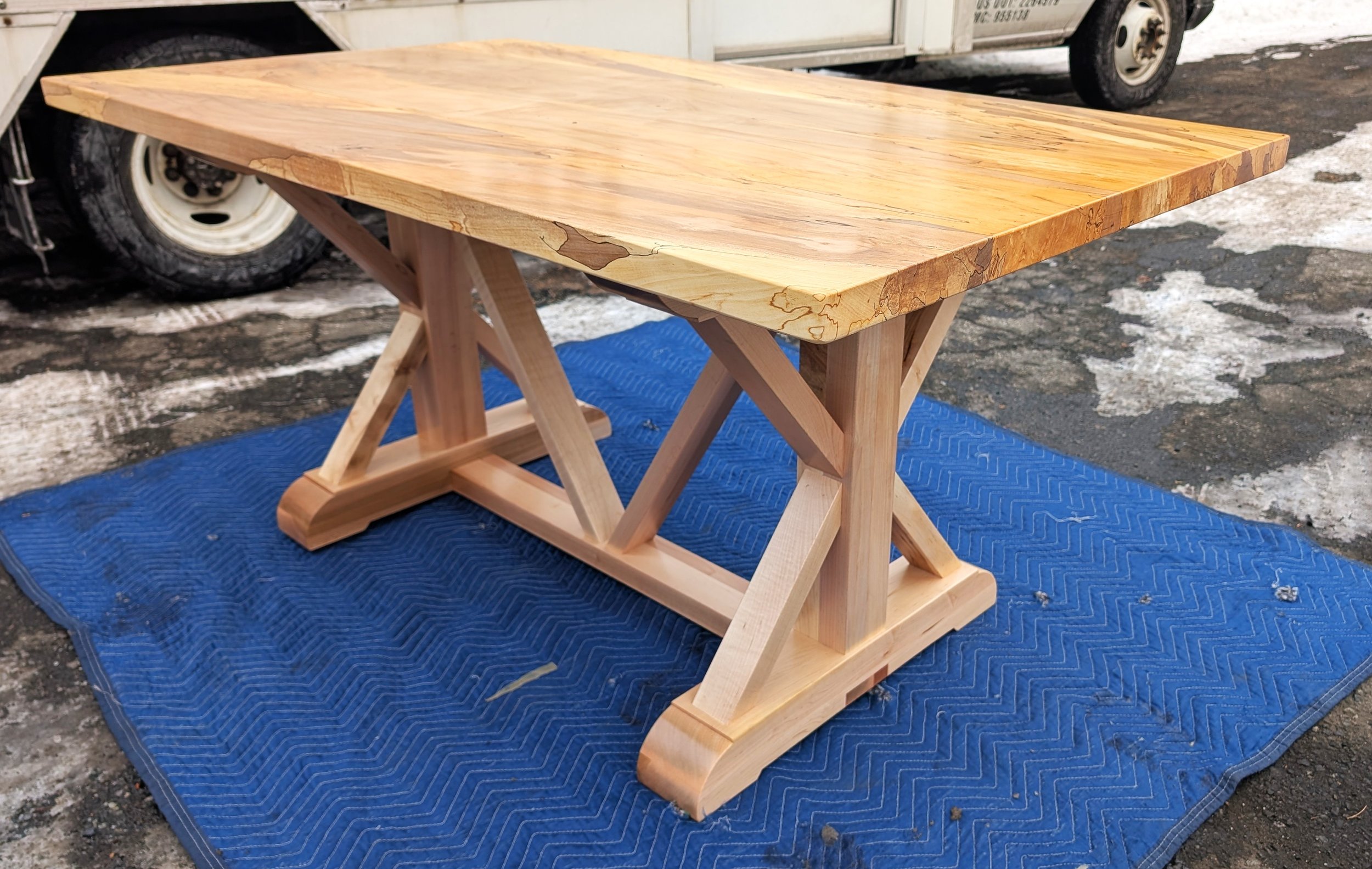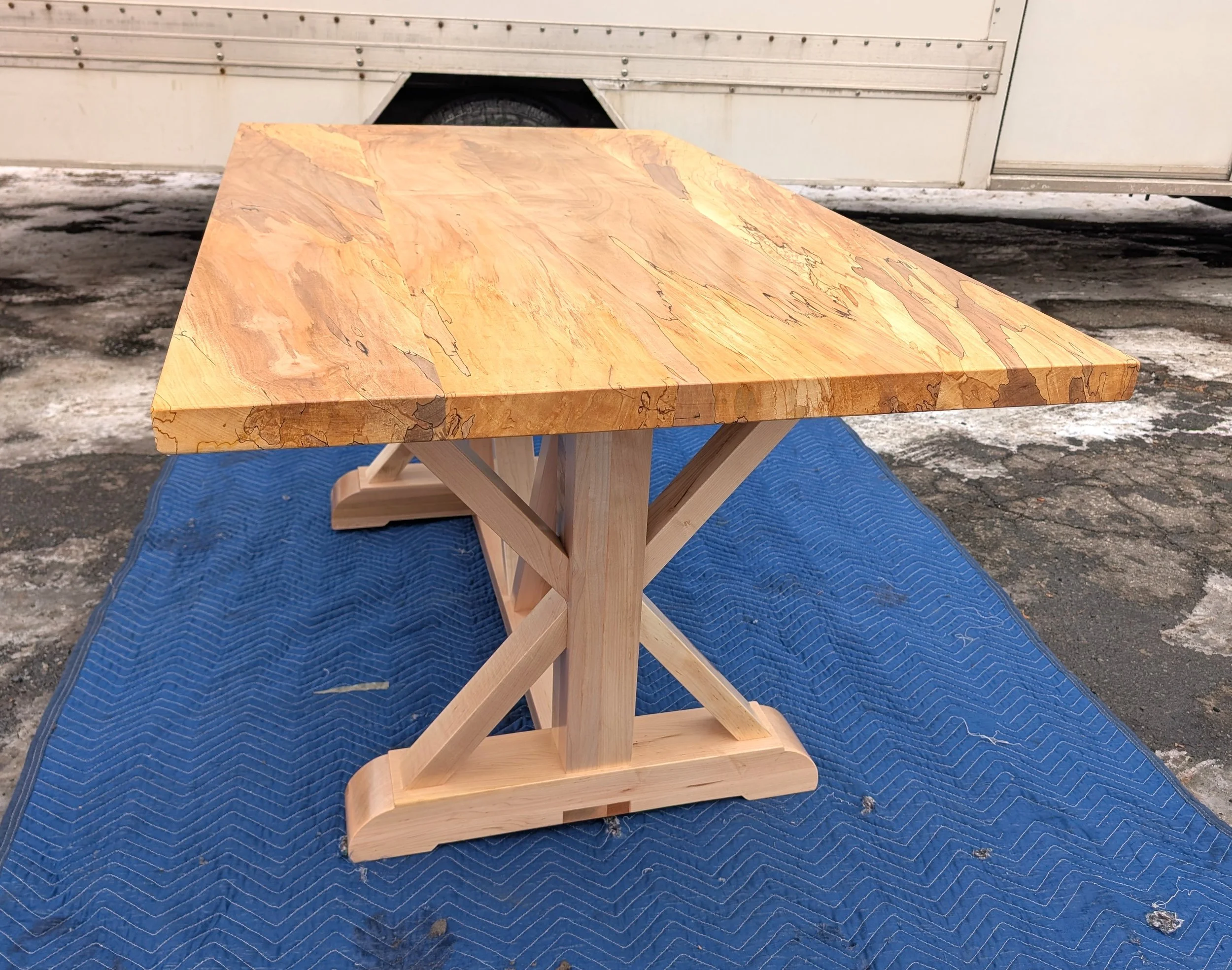 Detail Shot: Table #19 (Our Top-Selling Table Style) with a top in Spalted Maple.