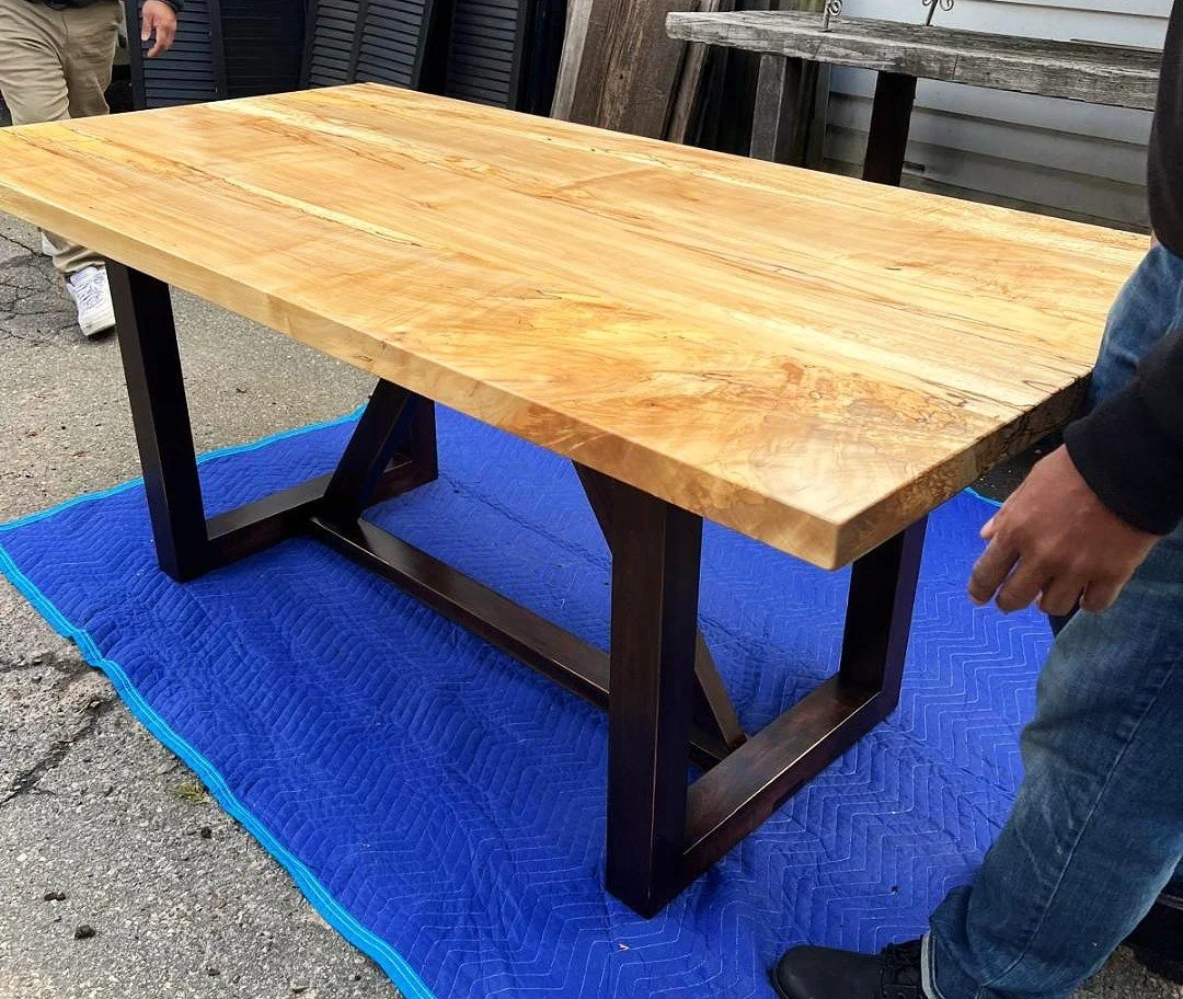Spalted Maple Trestle Table with Steel Legs! A Show-Stopper!